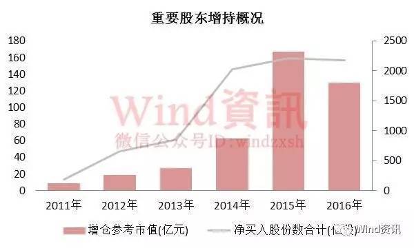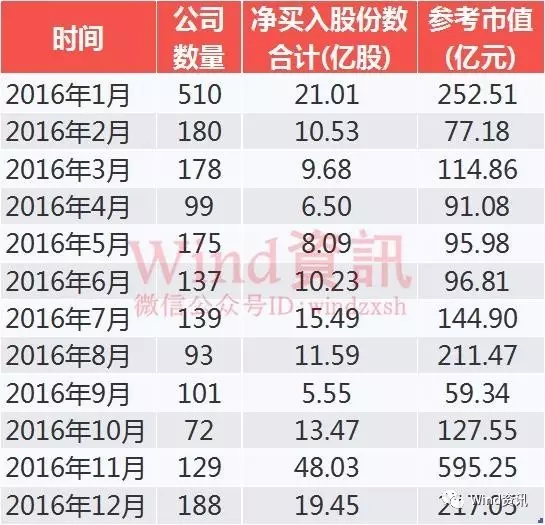具体到单月情况,2016年1月份增持公司最多,达到510家;11月份重要股东净买入48.03亿股,增仓市值约595.25亿元,创全年最高记录。