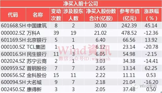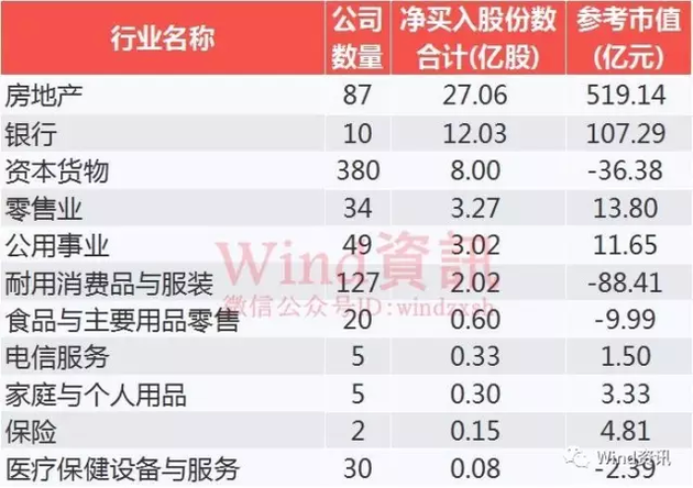 2016年净买入超过1亿股的公司有19家,净买入超过2亿股的公司有10家。所有净买入的公司中,中国建筑最猛,净买入达30亿股。此外,万科A净买入达21.02亿股。